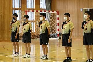 校長先生から、「新チームのカラーを発揮してほしい!コロナ禍で限られた練習時間でいかに心身共に充実した練習ができるか、今できることはないか考えた練習を。そして、本番では大きな自信をもって三松魂を発揮してほしい」とお話がありました。