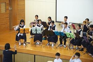 1日より部活動を再開し、この日の為に練習をしてきた吹奏楽部の演奏による校歌斉唱も行われました。