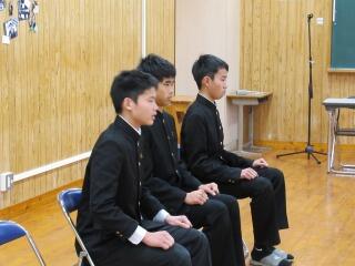 校長先生は修了証を全員に渡すことができたので自信をもって次の学年に進んでほしいことや、そして新しく入学する1年生を迎えるにあたっての先輩としてのあり方などを中心に生徒たちに話をしました。