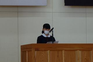 最後に、1学年代表で金丸海凛さんがお礼のことばを言ってくれました。