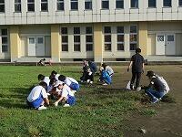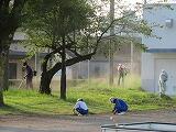 今回の美化活動は、第3学年の生徒・保護者が中心となっての美化活動でした。運動場のあらゆるところの草が元気良く伸びていたところでしたが、きれいに草が刈られ、すっきりとした環境となりました。