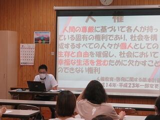 7月13日(火)ふれあい学級2回目人権講座「一人ひとりがもっている大切なもの」を行いました。講師は本校の平澤修先生にお願いしました。