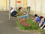 また、校舎玄関は本校の用務員が育てた冬の草花であるペチュニアやパンジー、そして正月には欠かせない葉ボタンが学校に彩りを添えています。