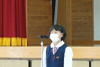 在校生代表の激励の言葉として、3年生の田中沙英さんが、地区分散での大会が最後となり、県一斉での大会に参加できなかった3年生の分も頑張って欲しいとありました。