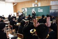 12月10日(木)に1学年の総合的な学習の時間に「13歳のハローワーク」を行いました。本時の目的は、①職業人(よのなか先生)の話を聞くことで将来の職業観や勤労観と向き合い深く考える機会とすること、②講話を通して考えたことを発信する能力を養うことでした。