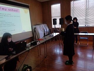 市の取組として、三松中学校が台湾の三星中学校との交流授業を英語の時間に行うもので、10月に引き続き、今回が2回目の交流となりました。前回は本校の3年生と三星中学校の1年生との交流でしたが、今回は本校1年生と三星中学校2年生との授業となりました。1年生担当の長野教諭がより相手に伝わりやすい交流にするために、プレゼンに文字を入れて、発表の後にすぐ質問する形式をとりました。1年生の代表の生徒たちは、カメラに向かって堂々と大きな声で自分が紹介したいことについて英語で説明し、三星中学校の生徒たちも臆することなくカメラの前に出てきて大きな声で質問したり、答えたりしてくれました。