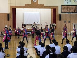 鑑賞教室でマーチングバンド演奏を鑑賞しました