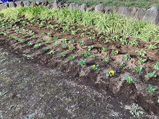 当日は気温が下がり、冷たい風の吹く中の作業となりましたが、限られた時間の中で1年生のチームワークが光り、みんなで協力し合って苗を植え、時間内に全て植えることができました。これからはこの道路を通る度に、みんなが花壇に目を向けることになるでしょう。