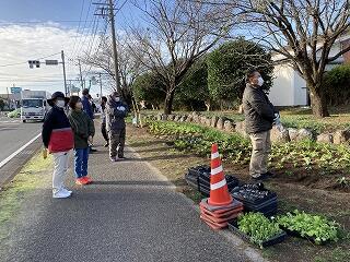 この活動は、小林土木事務所の主催で行われているもので、国道268号線沿いの金鳥居交差点近くの花壇に、色とりどりの花の苗を造園組合の方々と一緒に植えました。