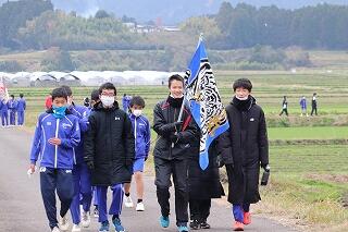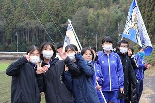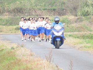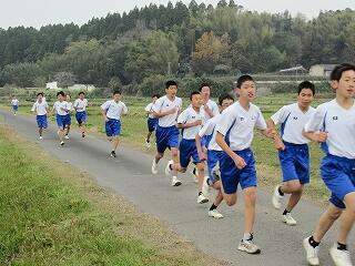 大変寒い中での開催でしたが、生徒たちはこれまでの練習の成果を十分に発揮し、力強い走りを見せてくれました。肝付校長先生も一緒に走ってくださり、観客も大いに盛り上がりました。