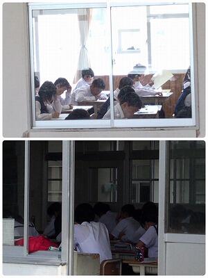 (写真左 上:1年C組、下:2年B組 写真右:3年生)