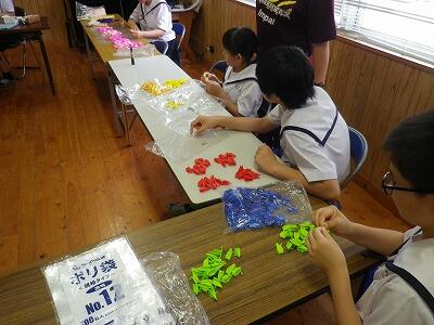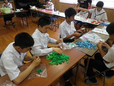 2年生はもうすぐ修学旅行を控え様々な活動や準備を進めています。今日は訪問先のひとつである長崎市の平和公園にて平和の祈りを込めて手向けるための千羽鶴の準備を行いました。1色あたり50羽の鶴を20色分を折っています。
