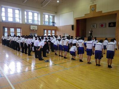 先日の記事でも話題にしましたが、西諸地区中学校総合体育大会がもうすぐ始まります。今日は6月6日の水曜日に校内で行われる壮行式の練習指導が行われました。各部では、キャプテンを中心に大会での目標などを発表し大会に向けての決意を表明します。