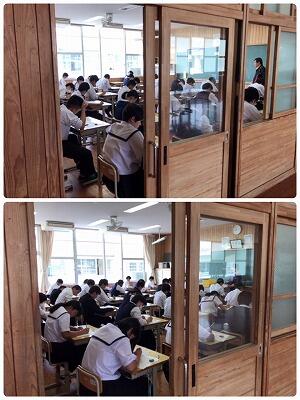 (写真左 上:1年C組、下:2年B組 写真右:3年生)