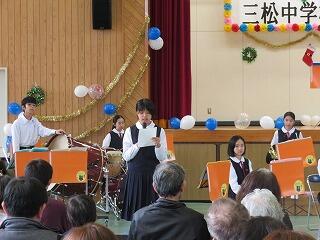 当初、雨の影響でできるか心配していましたが、さすが「おやじ」、熟練の技をもって約3時間ほどでとても立派な門松ができました。次の日に登校してきた子どもたちも笑顔、来年も三松中学校がいい年になりますように迎えてくれています。お近くにお寄りの際は、是非とも手作りの門松をご覧ください。
