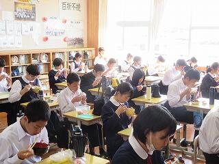 第3学年は学年の役員さんが中心となり豚汁を準備していただきました。とても美味しくいただきました。合格祈願餅も準備していただきました。本日の準備等をしていただいた学年役員、保護者の方々に深謝いたします。ありがとうございました。