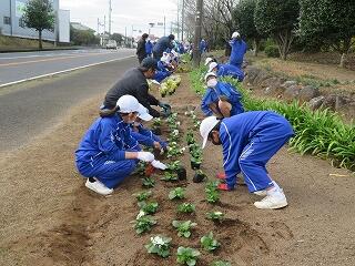 11月18日(木)に本校1年生が、国道268号線 水流迫地区の花壇に植栽活動を行いました。