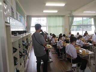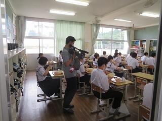 9月3日(金)、給食の時間にNHK報道局の方が来られ、給食の様子を撮影しました。