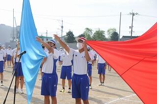 校長先生から、「新チームのカラーを発揮してほしい!コロナ禍で限られた練習時間でいかに心身共に充実した練習ができるか、今できることはないか考えた練習を。そして、本番では大きな自信をもって三松魂を発揮してほしい」とお話がありました。