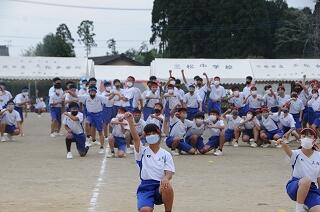 新型コロナウイルス感染症対策ということで、午前中のみの開催ではありましたが、子どもたちの姿からは、規模縮小など問題ではないと言わんばかりの充実した頑張りを見せてくれたと思います。まさに、開会式の津奈木美咲生徒会長からのあいさつにあったように、「これまでの体育大会と変わらない、いや、これまで以上の体育大会にできる」ということを全校生徒で証明してくれました。