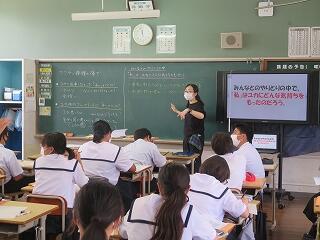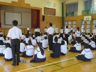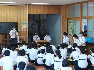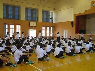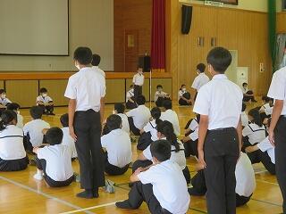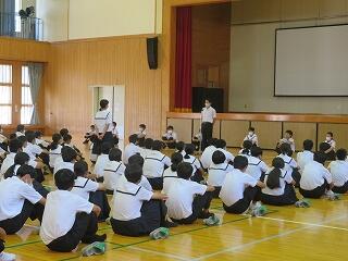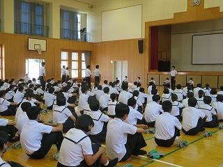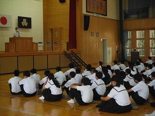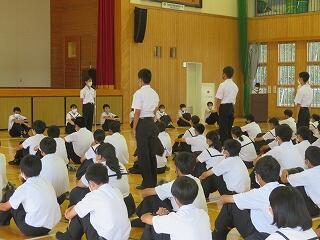 校長先生からは、生徒総会や西諸地区中学校体育大会、体育大会をとおして、個々の可能性や成長が見られたことや、1学期の成果と課題を明確にすること、通知表の所見(学級担任の先生の思い)についてお話がありました。
