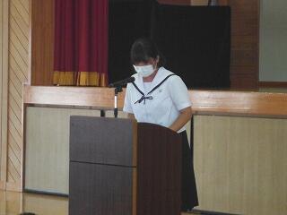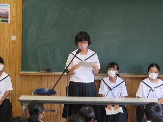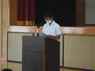各学年からと生徒会を代表して、1学期の反省や2学期から頑張ることを発表しました。