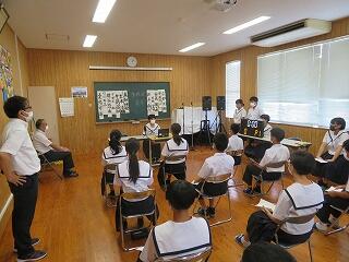 14日(木)の総合的な学習の時間(2学年)、岩戸神楽稽古では、岩戸神楽保存会をはじめ、5名の方からご指導いただきました。大変勉強になりました。ありがとうございました。