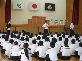 在校生代表として、3年生の津奈木 美咲さんが「ぜひ、みなさん一人一人がパフォーマンスを十分に発揮し、満足感や達成感が得られるよう、私達在校生も学校からエールを送り続けます!」と激励の言葉をかけていました。