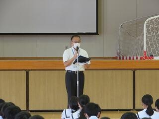 その他、表彰・各先生(生徒指導・学習指導・保健体育指導)からの話・転入生の紹介がありました。