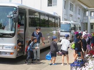 7月2日(金)から小学校水泳授業がスタートしました。マイクロバスで移動し、2時間単位・学年ごとに水泳授業を行っているようです。小学生の元気な声が教室まで聞こえてきます。