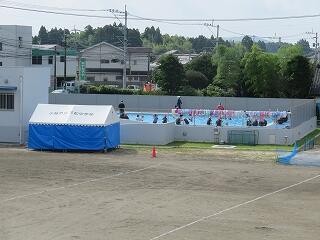 6月に本校の生徒が水泳の授業を行い、7月から小学校の児童が水泳授業を行います。