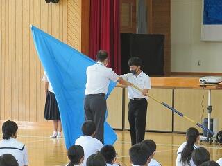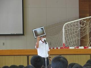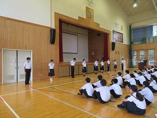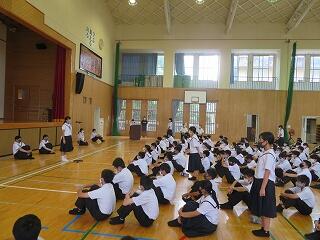 その他、表彰・各先生(生徒指導・学習指導・保健体育指導)からの話・転入生の紹介がありました。