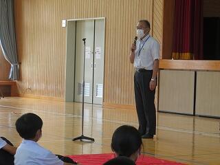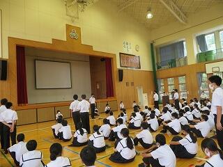 校長先生からは、「夏休み期間を通じて、大きな事故、事件の報告もなく、今日、元気なみなさんと再会することができていること、本当に嬉しく思います。」とありました。そして、東京オリンピック・新型コロナウイルス感染対策についての話がありました。(コロナ感染症予防対策:トップページ掲載)