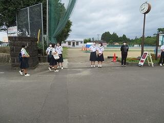 今朝のあいさつ運動では3年A組が校門に並んで登校する生徒に笑顔であいさつしていました。朝のお忙しい時間帯にも関わらずあいさつ運動にいっしょに参加していただいた保護者の皆様、本当にありがとうございます。