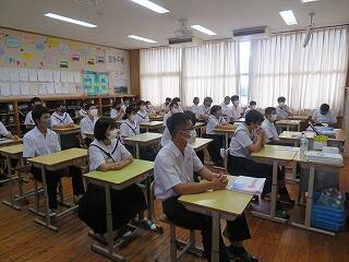 8月6日(金)は登校日でした。本日は、全校集会・表彰、平和学習を行いました。