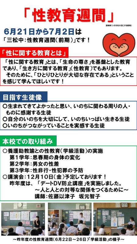 6月21日から7月2日は「三松中:性教育週間(前期)」です。