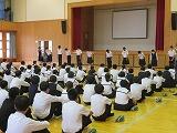 今週末から始まる地区中学校総合体育大会に向けての壮行式が2日(水)に行われました。