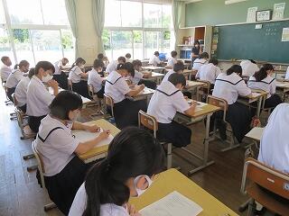 6月22日(火)、「学力診断テスト(第3学年)」が始まりました。3年生にとって重要なテストです。「学力向上」は本校の重要課題で、先生方もお互いに知恵を出し合いながら学力向上対策に取り組んでおります。志望校合格に向け切磋琢磨です。高校説明会を7月8日・9日に予定しております。近日中に第3学年保護者向けの文書を配付いたします。