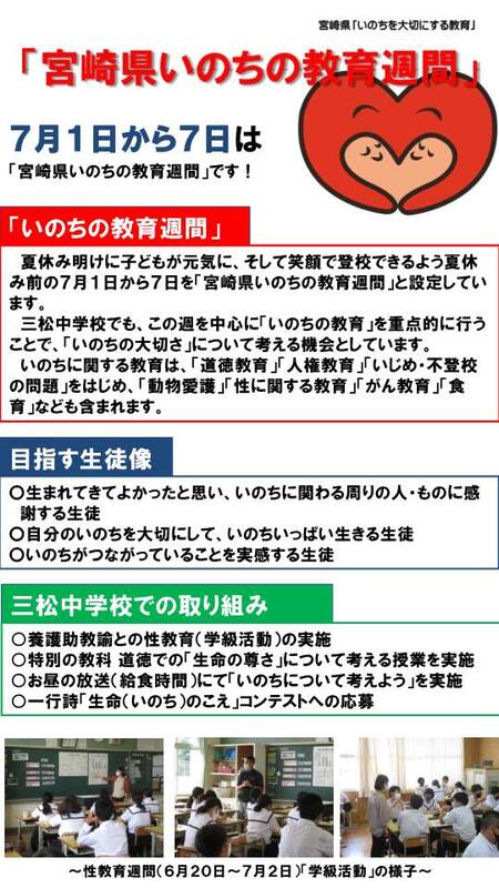 7月1日から7日は、「宮崎県いのちの教育週間」です。