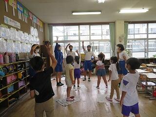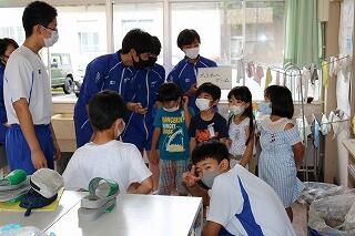 今日の交流学習は体育館と各教室に分かれ、生徒たちが班を編成してゲームをはじめ、折り紙や風船を使った遊びなどを企画し小学生と一緒に活動しました。小学生はお兄さん、お姉さんが来てくれたことに本当に喜びたくさん駆け回っていましたが、生徒たちも小学生の喜ぶ姿に笑顔がこぼれていました。とても楽しい時間を過ごすことができました。