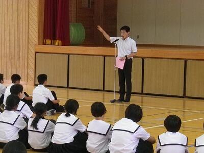 全員出席、とはいきませんでしたが、夏休み期間中の大きな事故、事件等の報告もなく、全員無事に今日を迎えることができました。これもご家庭での指導、地域での支援があってのことと思います。本当にありがとうございました。