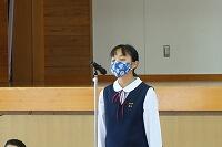 在校生代表の激励の言葉として、3年生の田中沙英さんが、地区分散での大会が最後となり、県一斉での大会に参加できなかった3年生の分も頑張って欲しいとありました。