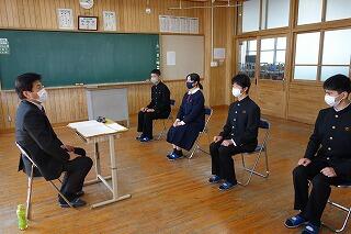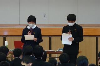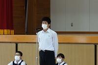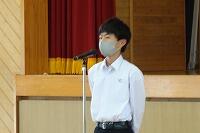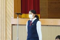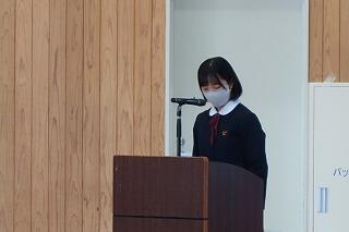 在校生代表の激励の言葉として、3年生の田中沙英さんが、地区分散での大会が最後となり、県一斉での大会に参加できなかった3年生の分も頑張って欲しいとありました。