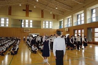 校長先生から、西諸地区での大会と同様にまずは基本を大事にして、自分のプレーに自信をもって実力を発揮すること、そしてコロナ対策も含めスポーツマンシップに則って戦うこととお話がありました。