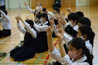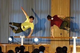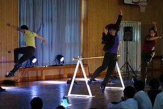 普段目にすることのないダンスを目の当たりにし、どう反応して良いのかとまどっていた生徒も多かったようですが、生徒も参加してのワークショップでは、恥ずかしそうにしながらも一生懸命踊っている生徒、リズムにのって楽しそうに踊っている生徒、様々でした。