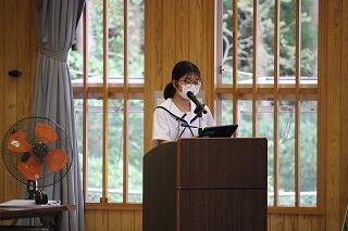 生徒代表激励の言葉では、川野來花さんが「みなさんを尊敬しています。自分たちを信じ、力を発揮し、中学校生活のすべてをかけて頑張ってください。」と元気が出る言葉を述べてくれました。その後の選手宣誓では、陸上部主将の井原瑠愛さんが、力強い宣言をしてくれました。