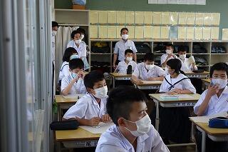 1学期後半が8月25日(火)から始まりました。授業開始日の全校集会は、各教室内で放送を使って行いました。集会での各学級の様子です。