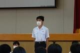今年度の体育大会は、新型コロナウイルス感染防止等をふまえ、午前中開催となりましたが、実行委員長の田中大斗さんが、このような状況の中で開催されることに感謝をして臨みたいと話していました。