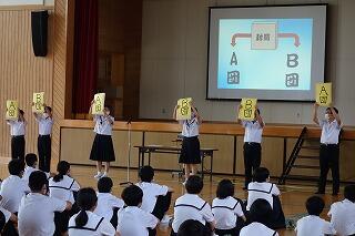 最初に各学年のリーダーがくじをひいてA団とB団を決めます。