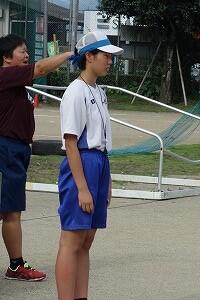 実行委員長 今奈良弥生さん    模範演技をする副実行委員長の加藤紗織さん